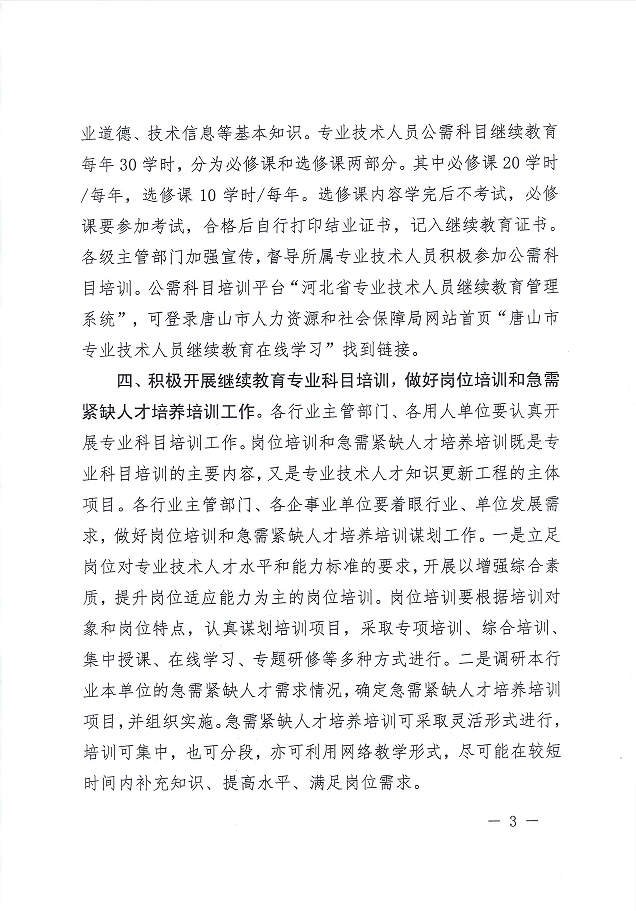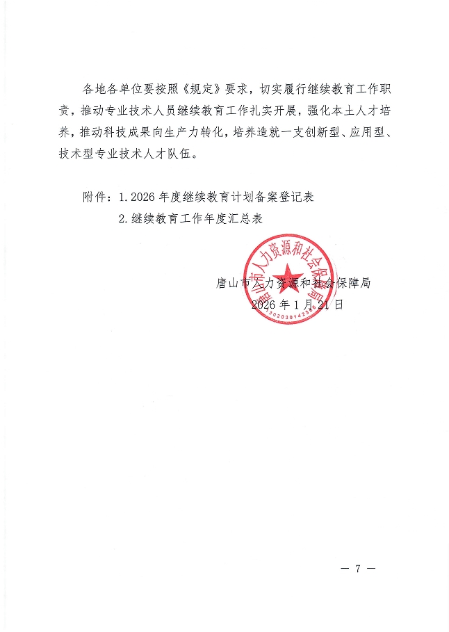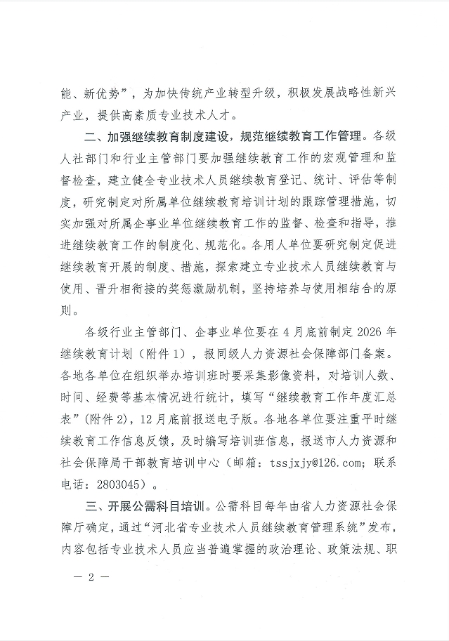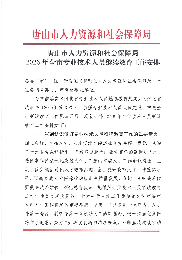 唐山市人力资源和社会保障局2026年全市专业技术人员继续教育工作安排
